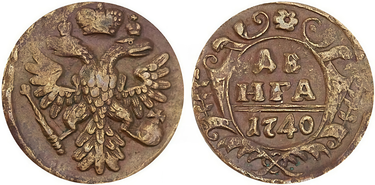 Друзья! Вновь приветствую вас на страницах канала «Забытое»! Сегодня у нас очередное продолжение материалов о разновидностях и стоимости монет Российской империи и СССР. На этот раз мы поговорим об экземпляре периода Российской империи, а именно о денге 1740 года. Погнали!✌️ Данный экземпляр был отчеканен в последний год правления императрицы Анны Иоанновны (1730—1740 годы) на Екатеринбургском монетном дворе в 1740 году. Медная монета весила чуть более 8 граммов и имела сетчатый гурт. Отмечается, что вес денги может иметь значительные отклонения от нормативного как в большую, так и в меньшую сторону. Диаметр монет изменяется в довольно широких пределах. В 1740 году Екатеринбургский монетный двор выпустил более 17 млн. экземпляров. Знак монетного двора на монетах отсутствует. Денга имеет всего две разновидности. Основная разновидность этих монет заключается в оформлении реверса, где цветочная розетка может быть представлена в двух вариантах: с шестью лепестками или в виде гвоздики. В ию