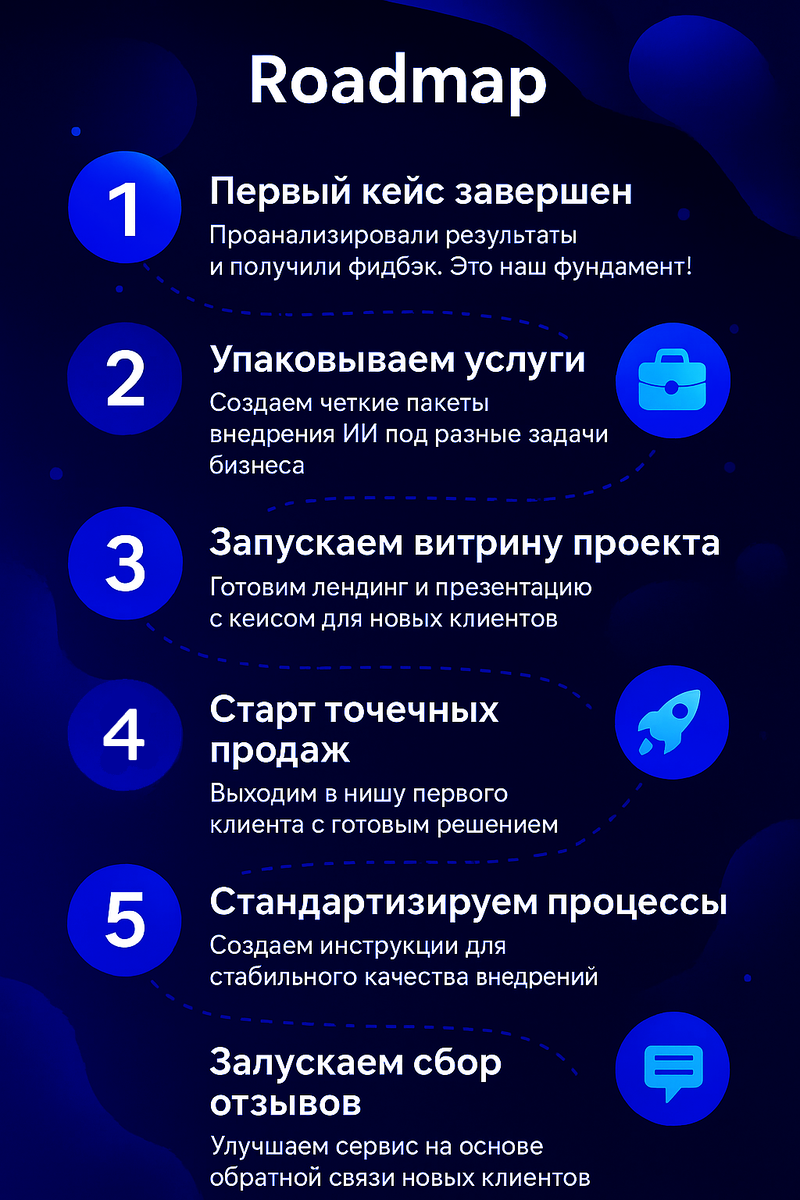 Мы последовательно движемся по roadmap и строим масштабируемую систему внедрения ИИ для бизнеса.