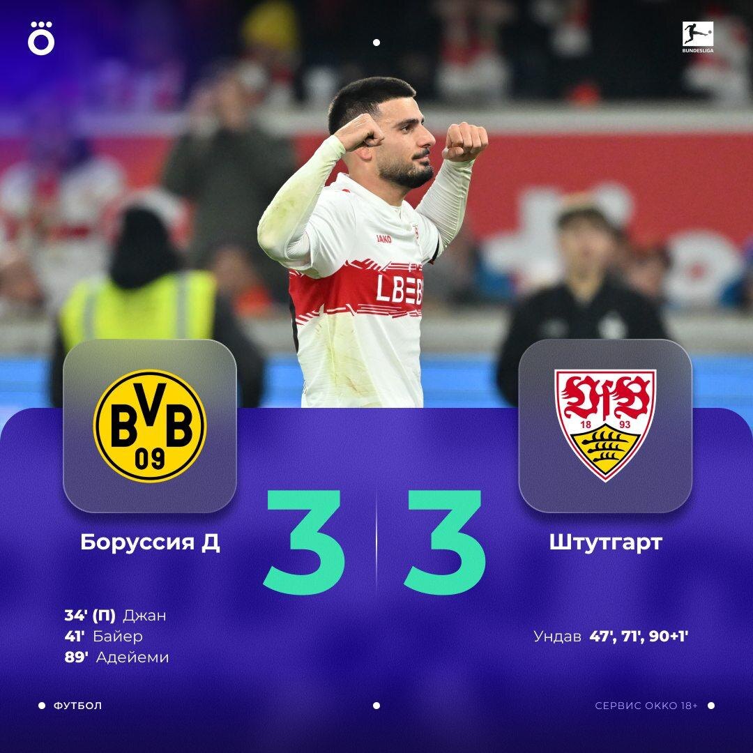 Хет-трик Ундава, шесть голов и двойной камбэк «Штутгарта». Сумасшедшая концовка матча в Дортмунде 😱