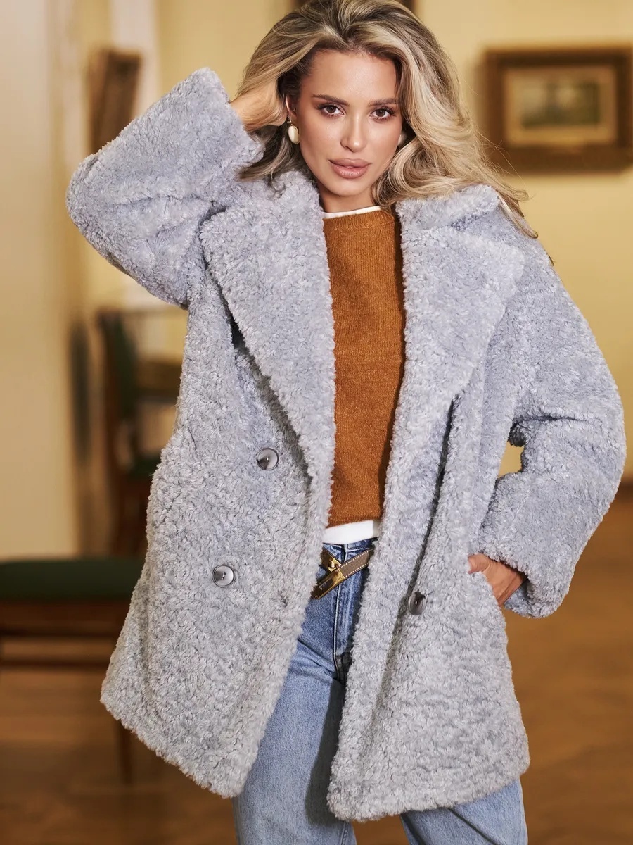 Эта укороченная шуба из экомеха – прекрасный пример того, как можно оставаться стильной даже в сильные морозы. Модель выполнена из мягкого теплого материала с высоким содержанием шерсти, что обеспечивает отличную защиту от холода. Оверсайз крой делает её невероятно комфортной для повседневной носки, позволяя свободно двигаться и наслаждаться зимними прогулками. Однобортный дизайн с застёжкой на пуговицы выглядит лаконично и современно.