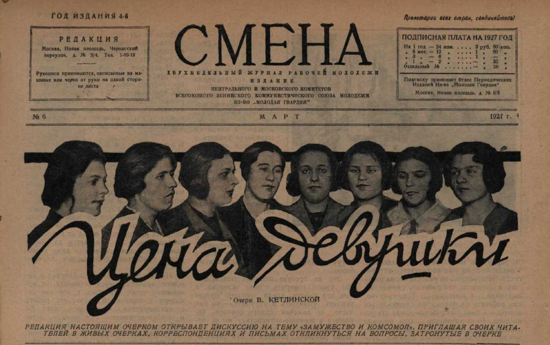 В. Кетлинская, "Цена девушки", 1927г., "Смена", №6