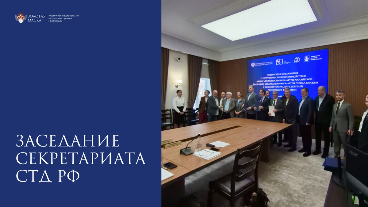Сегодня на заседании Секретариата СТД РФ обсудили несколько важных вопросов, касающихся работы премии и фестиваля «Золотая Маска» Были подведены итоги работы Экспертных советов за XXXII конкурсный цикл (сезон 2024-2025) и утверждены председатели и составы Экспертных советов для XXXIII конкурсного цикла (сезон 2025-2026) «Музыкальный театр». Предложение Экспертного совета для номинаций «Драматический театр и театр кукол» будет рассмотрено повторно на следующем заседании. Кроме того, особое внимание уделили обсуждению II Всероссийской конференции «Золотая Маска и театральные фестивали России». Ее итогом стала Резолюция, ознакомиться с которой можно на сайте премии. Также Секретариат СТД РФ поддержал предложение участников Конференции о целесообразности создания Ассоциации театральных фестивалей России и поручил дирекции «Золотой Маски» объединить усилия с Театром-фестивалем «Балтийский дом». Важным шагом в сторону улучшения работы премии стало решение о создании Редакционной коллегии, ко
