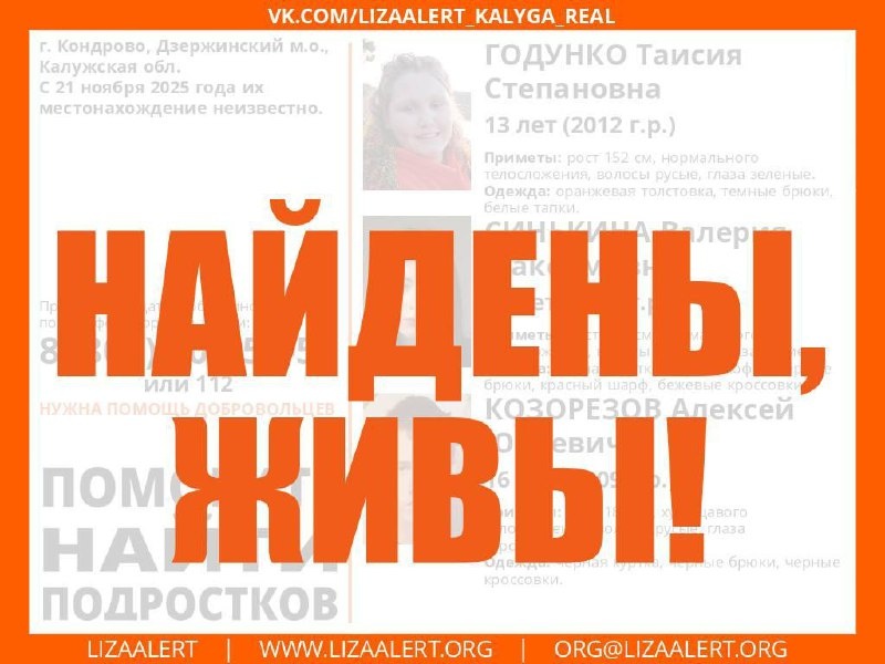 Внимание! Пропали подростки Найдены, живы! С 21 ноября 2025 года их местонахождение неизвестно. Просим сообщать любую информацию о местонахождении пропавших по телефону горячей линии 8 800 700-54-52 (звонок бесплатно на территории РФ) или 112. 📺 Подписывайся на наш канал в Максе