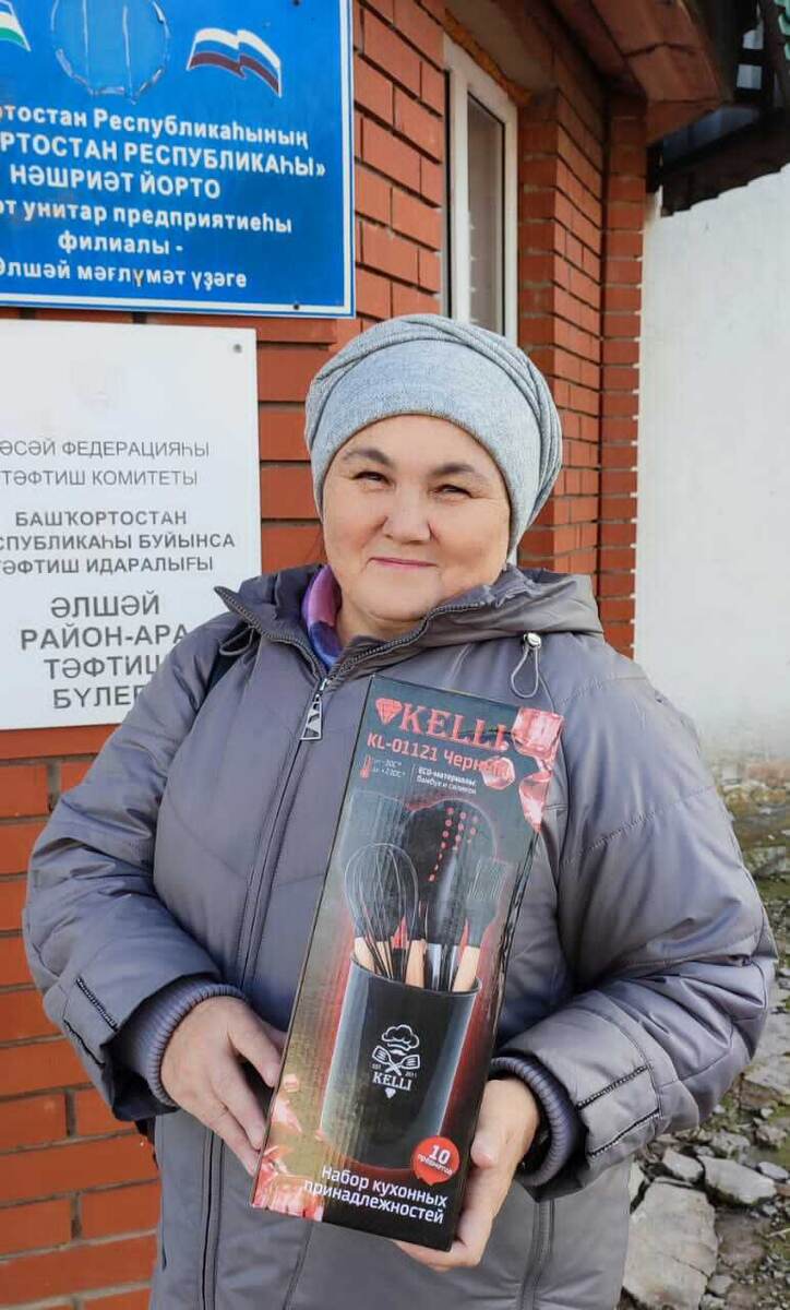 Жительница села Раевский выписывает газету уже много лет. В последние годы Рима Ахметзянова выписывает газету через редакцию вместе с коллегами из централизованной бухгалтерии. Кстати, о том, что она выиграла приз, ей тоже сообщили коллеги. - Конечно, обрадовалась. Получать подарки, тем более неожиданно, всегда приятно, - улыбаясь, призналась читательница, которой достался кухонный набор.