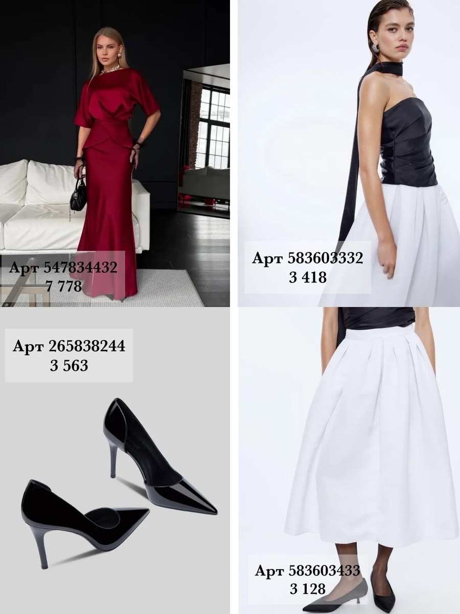 Новый год — тот самый праздник, когда хочется сиять по-особенному: выбрать платье или комплект, который не просто украшает, а подчёркивает индивидуальность, красоту и настроение. В этой подборке собрано несколько контрастных, выразительных и праздничных образов из представленных фото. Я подробно разберу каждый элемент и дам профессиональные советы, как сделать его частью цельного новогоднего стиля. Делаю строго по порядку, как расположены товары. Образ 1. Глубокий красный — роскошь, которая всегда уместна арт: 547834432** Это платье — воплощение классической праздничной элегантности. Насыщенный красный цвет подчёркивает фактуру сатина, а драпировка на талии создаёт красивый силуэт «песочные часы». Детально: • благородный сатиновый блеск, отражающий свет мягко и равномерно • драпировка визуально корректирует талию • длина в пол делает образ торжественным • мягкий рукав — комфорт и утончённость Совет стилиста: К такому платью не стоит добавлять массивных украшений — золото в лаконичном