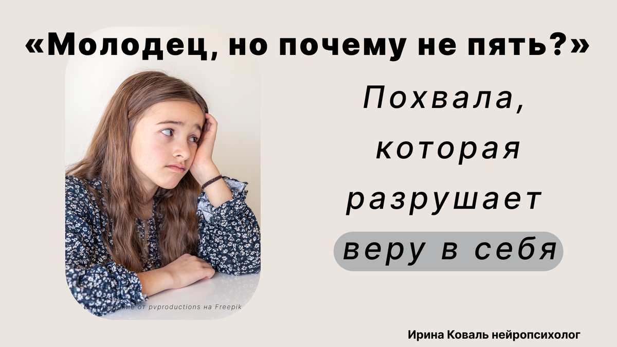 «Мама, я контрольную на 5 решила!» - «Ну хорошо. Садись обедать». Но стоило мне получить 4 - я сразу превращалась в бестолочь. Как-то нам прислали очень сложную контрольную по математике (как потом выяснилось, перепутали и в нашу школу отправили вариант для школ с углубленным изучением). Результат был таким: из тридцати человек - четыре четверки, одна из них у меня, штук десять троек и остальные - неуды. На свою 4 дома я получила сухое «Молодец, конечно, но почему не 5?» Чем старше становлюсь, тем больше вижу, как на мне отразилась такая «похвала». Я выросла перфекционистом, для которого любая, даже блестящая, работа всегда «недостаточно хороша». Мне сложно радоваться своим победам, потому что внутренний голос тут же шепчет: «Могло бы быть и лучше». А браться за новые сложные проекты страшно - вдруг не идеально получится с первого раза? Эта детская установка «ты ценишься только за пятерки» до сих пор отзывается эхом во взрослой жизни, заставляя сомневаться в себе даже тогда, когда объе