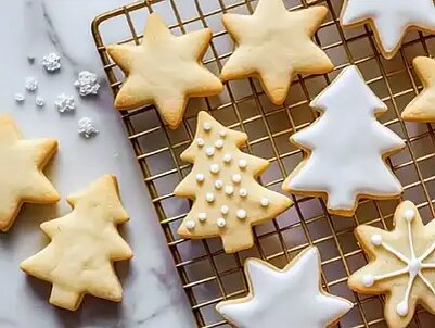 Насыщенное, маслянистое и идеально хрустящее по краям, это простое масляное печенье станет идеальной основой для праздничного посыпания или посыпки сахарной пудрой. Такое печенье украсит новогодний стол. Обязательно попробуйте его приготовить. Вот рецепт сдобного печенья. Для приготовления нам понадобятся вот эти продукты: