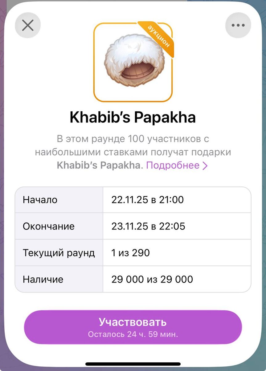 Павел Дуров заколлабился с Хабибом Нурмагомедовым и завёз в Telegram подарки с легендарной папахой. На аукцион завезли всего 29 000 штук. Ждём подарки с Хасбиком. Бесплатный GPT-bot ⚡️НейроМастер⚡️