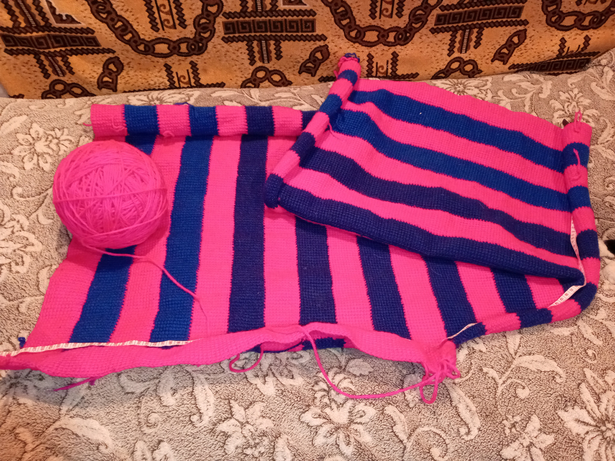 Здравствуйте мои дорогие подписчики и гости канала. Меня зовут Светлана. Не всегда всё идёт так как нам хочется. В прошлой статье я начала обвязку коврика. Однако пряжа была потолще (не в 2 нити, а в 3). Но я всё равно стала вязать. Что из этого получается вы можете видеть на фото. Вряд ли половик выпрямится после стирки. Поэтому решила распустить обвязку и снова отложить его в недовяз до тех пор, пока куплю подходящую пряжу. Обидно. про шапочку-косынку Я связала эту шапочку-косынку, когда думала, что уже не буду выкладывать на канал. Теперь она попалась мне на глаза и я решила сделать краткое описание её вязания. 3 фото Вязала на двух спицах. Петли набрала из расчёта 4п рапорта+2п для симметрии +2п кромочные. У меня 100 петель. Провязала 5 рапортов моей любимой резинкой 2 на 2 с перекинутыми петлями. Затем в начале и в конце ряда кромочную и 6 п продолжила вязать резинкой по её рисунку и путанкой 1 на 1 прямо 8 см. 1-й- 1 лиц. 1 изн 2-й- лиц над изн, изн над лиц После этого на