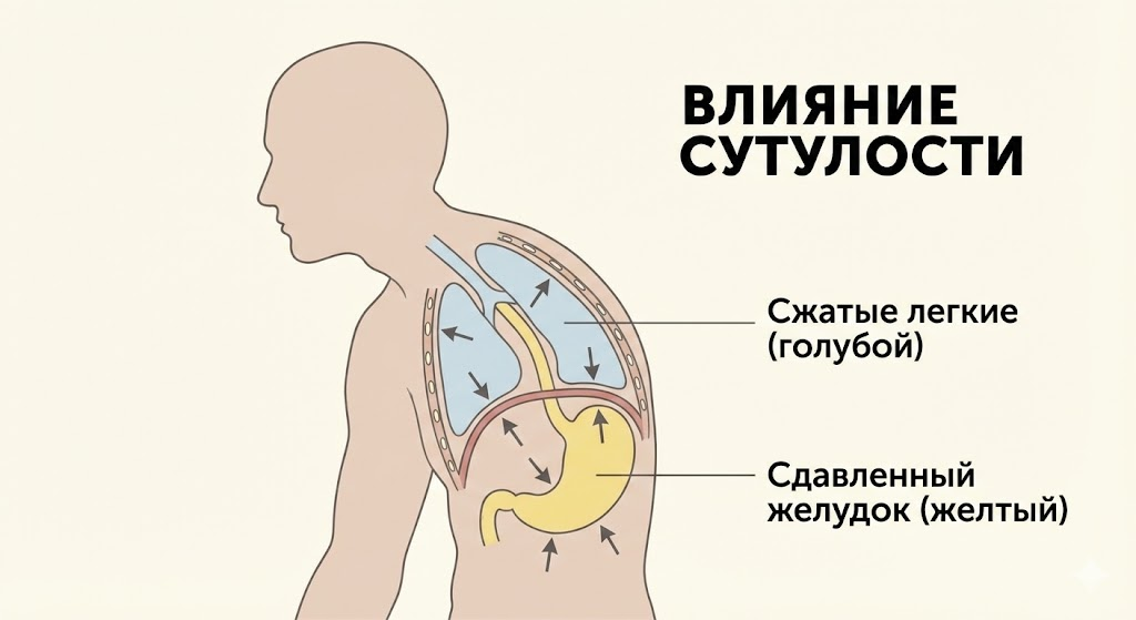 Мы привыкли считать осанку вопросом красоты или уверенности в себе. Однако Константин Мусин утверждает: положение тела напрямую влияет на работу внутренних органов и наше эмоциональное состояние. Осанка — это динамический баланс, и если он нарушен, страдает весь организм. Тело — это единая система, где все органы «подвешены» на связках к скелету. Существует двусторонняя связь: Часто родители говорят детям: «Не сутулься!». Ребенок выпрямляется на минуту, но потом снова сникает.