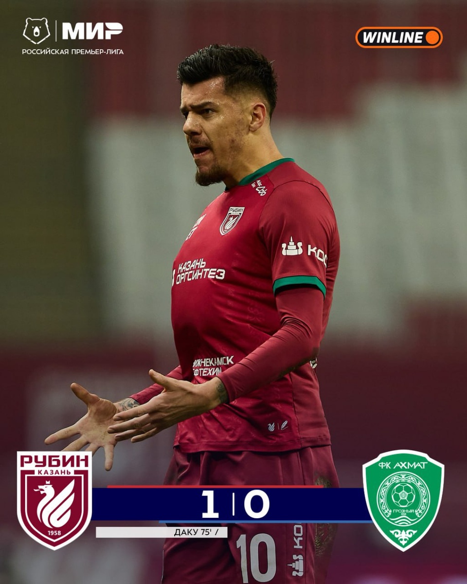 ❤️❤️ «Рубин» обыграл «Ахмат» в 16-м туре РПЛ — 1:0. Единственный гол на 75-й минуте забил Мирлинд Даку. «Рубин» набрал 23 очка и занимает седьмую позицию в турнирной таблице чемпионата страны. На счету «Ахмата» 16 очков. Команда занимает 11-ю строчку. @russian_rt_sport