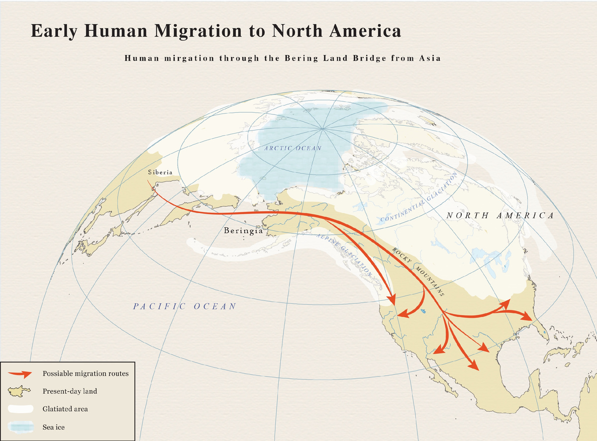 Получается что формула "жили в Сибири 25 тысяч лет назад, а затем перешли в Америку" для популярного текста в целом верна. Но в реальности между "жили в Сибири" и "перешли" помещаются тысячелетия жизни в Берингии, смена климатических эпох и сложная демографическая история
