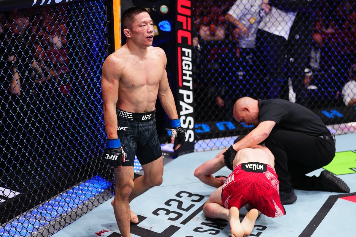 😣 Тагир Уланбеков не стал сдаваться и проиграл удушающим приемом в третьем раунде. #UFCQatar