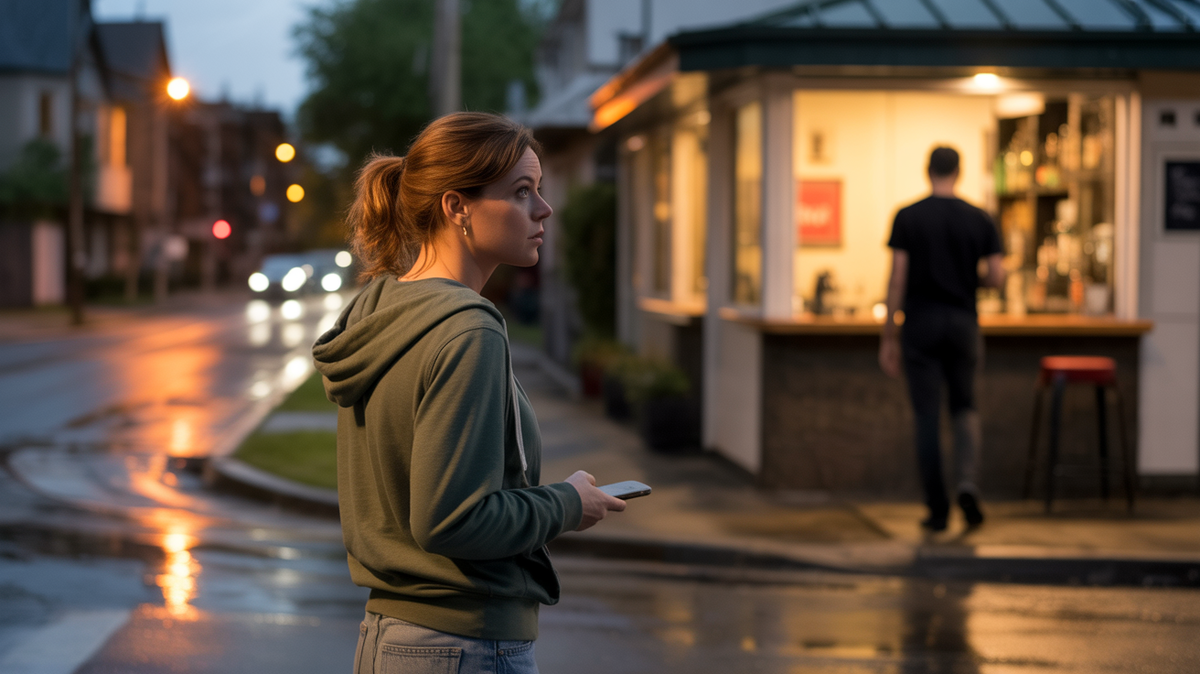 В этот раз она даже не притворялась, что идет к контейнерам. Свет фонаря, лужи с отражениями, всё тот же желтый прямоугольник витрины. Сердце билось чуть быстрее, как у подростка, который делает что‑то запретное.