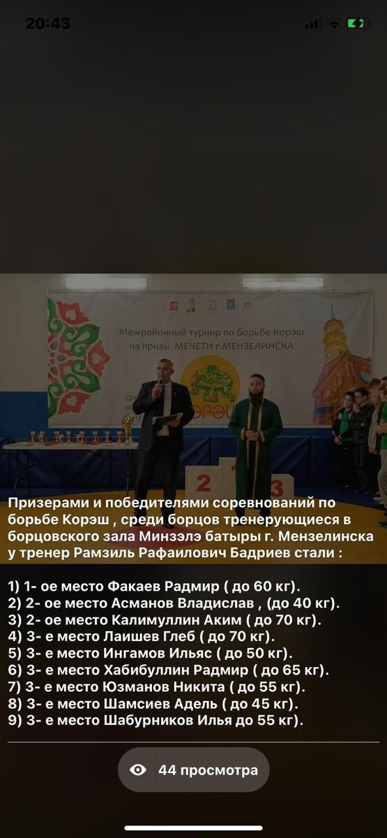 У Загриева Ленара призерами стали: 1) 2- ое место Загриев Фахим . 2) 3- е место Билалов Альвир.