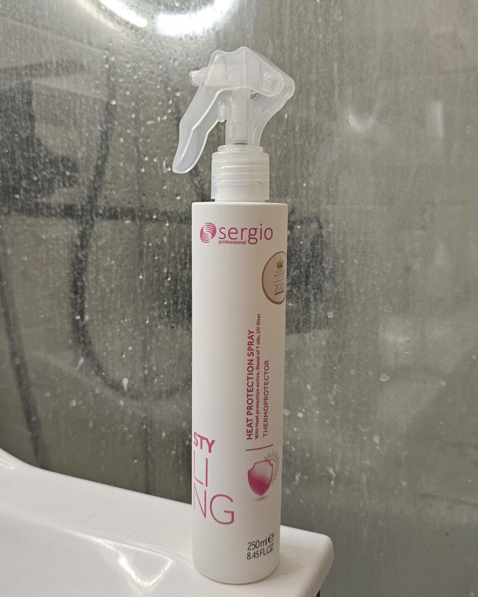 Продолжаю тестирование для премии Честная косметика Сегодня у меня в руках термозащита Sergio Professional. Недавно обновила цвет, блонд снова на месте, а значит нужна термозащита, которая не просто «чуть-чуть защищает», а работает всерьёз И вот что скажу сразу: это не легкий спрей для тонких волос, а уверенная, плотная, ухаживающая термозащита. Такая, что любит сухие, пористые, окрашенные волосы. Всем блондиночкам на заметку Какой эффект ждать? 1. Настоящая защита от температуры Фен, брашинг, утюжок: она держит удар. Волосы меньше ломаются, меньше пушатся и не теряют эластичность 2. Гладкость по длине Силиконы + масла приглаживают кутикулу. Волос блестит, отражает свет, выглядит плотнее и здоровее 3. Послушность без утяжеления Волосы становятся мягкими, эластичными и укладываются буквально в два движения 4. Питание и восстановление Формула насыщенная, и это чувствуется: сухие кончики становятся мягче 5. Защита цвета Есть UV-фильтры, важный момент для всех кто с окрашенными волосами