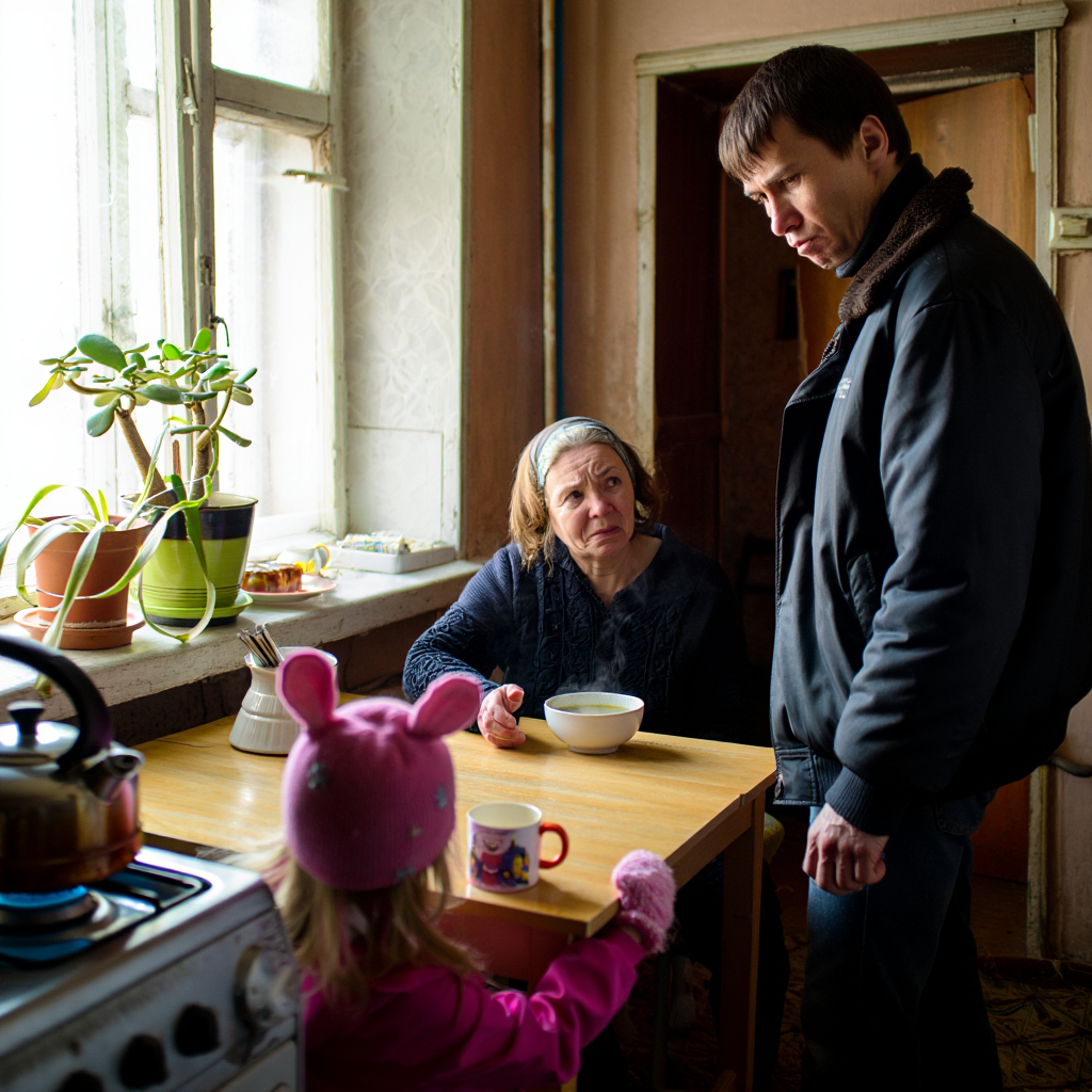 Я вернулась на кухню, стояла, слушала тишину, в которой было слышно, как на улице хлопнула дверь подъезда и как чайник тонко звенит, не понимая, что от него хотят. Села. Остался её след — тонкий отпечаток пальца на ложке, крошка на столе, кривой след из пара на тарелке. Я взяла салфетку, но не вытерла. Пусть это будет след ребёнка. Мне стало жалко греть чайник — всё равно не пить. Я перелила себе ложку супа и съела, чтобы не стояло в горле. Потом взяла тетрадь в ящике — свою маленькую, где я пишу, когда внутри начинает громыхать. Написала: «Не кричала. Не оправдывалась. Попросила варежки — не через него, а ей. Глаза у внучки — ясные».