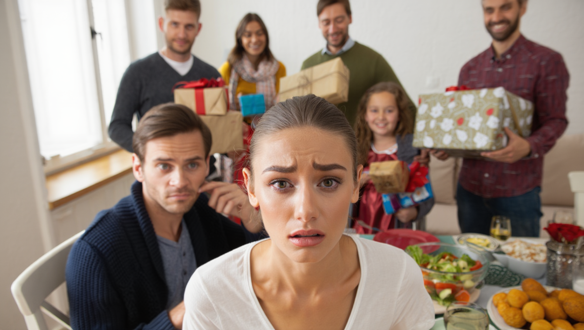 После ужина мама вышла из комнаты и вернулась с пакетами. Красиво упакованные подарки, перевязанные лентами. Она начала раздавать их с улыбкой.