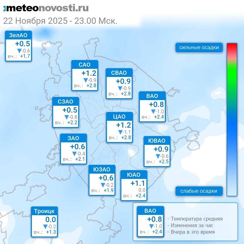 В 23:00 в Москве было от 0°C до +1.8°C, средняя температура +0.8°C #погода #Москва #осень #температура #22ноября #суббота