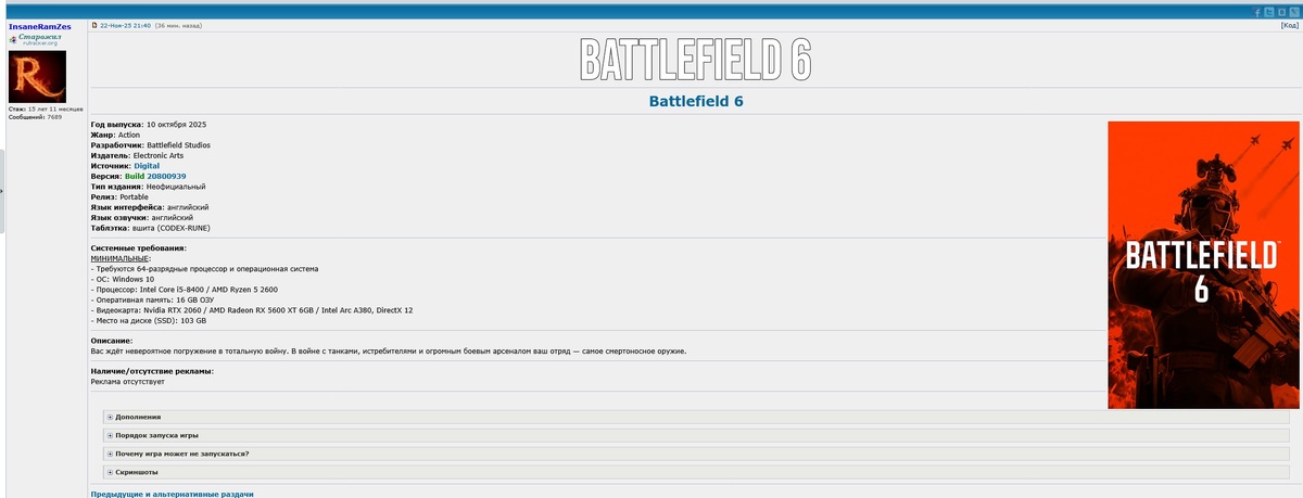 ⚡️В сеть слили кампанию Battlefield 6 её уже можно найти в зелёных магазинах. Несмотря на то что тайтл вышел без Denuvo, его не смогли сразу слить в сеть из-за наличия кастомной антипиратской защиты. Освобождаем 102 ГБ на диске. CtrlAltDelights- подписаться