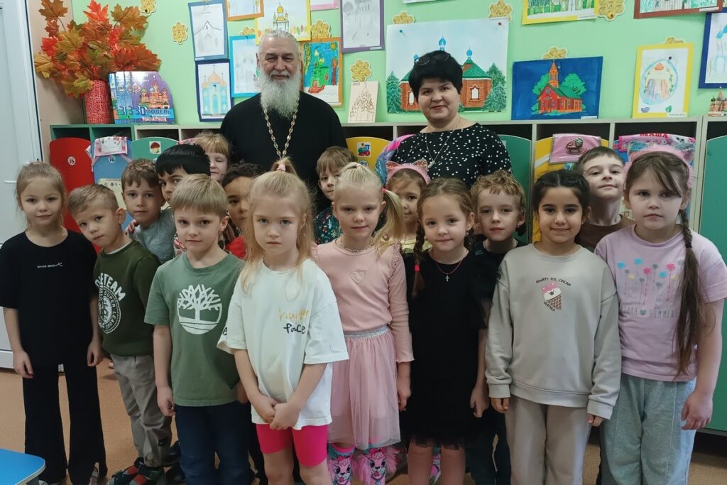 19 ноября 2025 года клирик Богоявленского храма д. Бородино г.о. Мытищи иерей Леонид Демаков и преподаватель воскресной школы О. А. Калгудина посетили детский сад № 866 «Семицветик» г.о. Мытищи и провели беседу за круглым столом с детьми подготовительной группы. Разговор был посвящён празднику Собора Архистратига Михаила и прочих Небесных Сил бесплотных. Иерей Леонид рассказал ребятам об ангельском мире, сотворённом Богом, об Ангелах – посланниках Божиих, сообщающих людям Его волю и оберегающих их от зла. Особенно внимательно ребята слушали рассказ об Ангеле Хранителе и рассматривали его икону. На занятии был продемонстрирован мультфильм об Архангелах. Дети живо участвовали в беседе, показали гостям выставку их рисунков и поделок на тему «Мой любимый храм». С благодарностью ребята приняли в подарок книгу и наборы для творчества.
