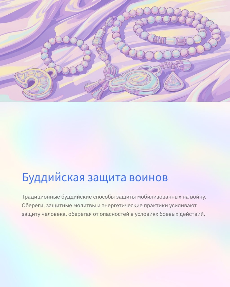 Буддийская защита воинов Традиционные буддийские способы защиты мобилизованных на войну. Обереги, защитные молитвы и энергетические практики усиливают защиту человека, оберегая от опасностей в условиях боевых действий. Больше о бурятской культуре и истории в нашем канале 👉 https://t.me/universe_buryat Наша группа https://t.me/biznet_place