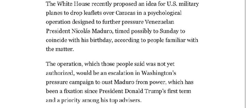 Trump plans 'LEAFLET DROP PSYOP on Maduro's birthday' just HOURS away — people familiar with the matter to WaPo Regime change 'FIXATION'
