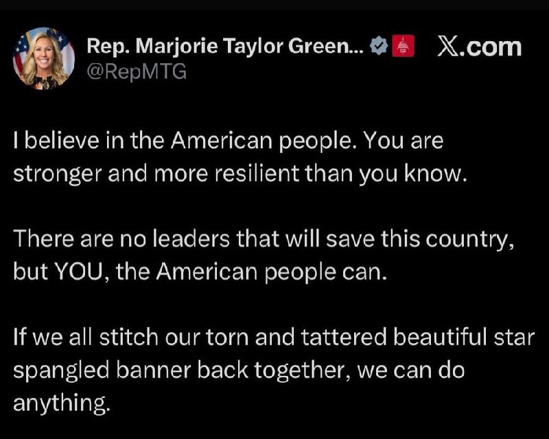 'NO LEADERS WILL SAVE this country but YOU the American people CAN'