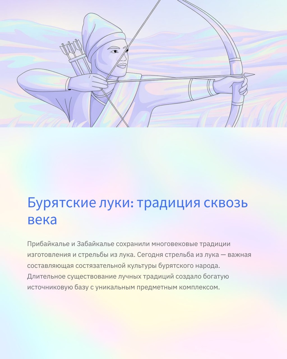 Бурятские луки: традиция сквозь века Прибайкалье и Забайкалье сохранили многовековые традиции изготовления и стрельбы из лука. Сегодня стрельба из лука — важная составляющая состязательной культуры бурятского народа. Длительное существование лучных традиций создало богатую источниковую базу с уникальным предметным комплексом. Больше о бурятской культуре и истории в нашем канале 👉 https://t.me/universe_buryat Наша группа https://t.me/biznet_place