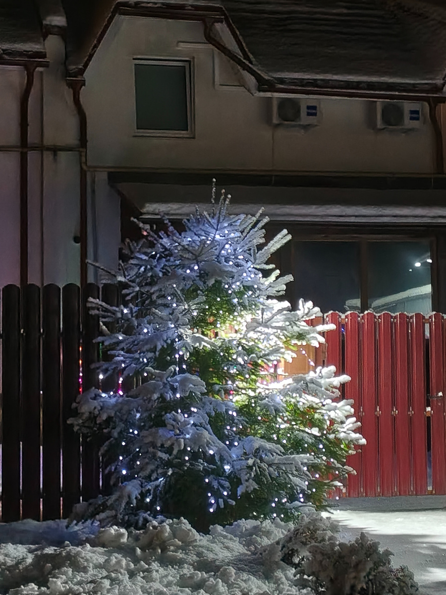 В городе уже почти нет снега, морозец неустойчивый, а на нашей даче есть! Пошли перед сном гулять и попали прям-таки в портал настоящего зимнего вечера. Мягкое свечение фонарей, узор ярких звезд, рассыпанных на небу, кое-где украшенные ёлочки перед домами - всё создавало зимнюю атмосферу! Олень уютно занял своё место на веранде. Туи, посыпанные снегом, перед нашим домом. Непривычно белые кусты тут и там. Деревья стоят, принарядившись в змние одежды - тулупы да шали- паутинки. Снег опускался на землю лениво, без торопливости и суеты. Предлагаю вам несколько отрывков из миниатюр Михаила Бару. Писала об этом писателе раньше. "Снежинки падают так медленно, будто девочка, которая их рисует, время от времени откладывает кисточку в сторону, подпирает щёку разноцветной ладошкой, вздыхает и долго смотрит в окно, прежде чем нарисовать ещё одну." "В провинции первый снег как упал - так и лежит, валяется даже. Ждёт второго, а то и третьего." "Зима ещё не поселилась насовсем, но уже з