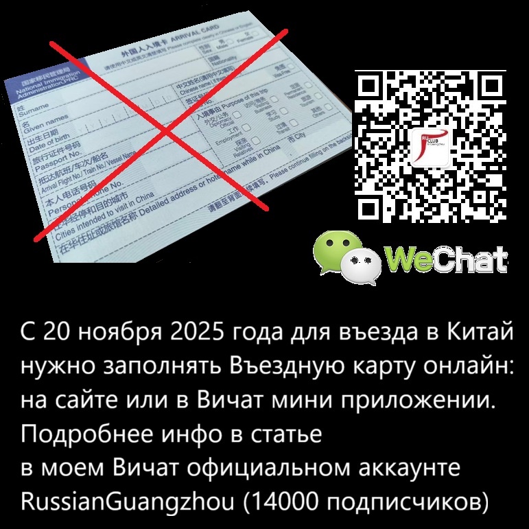 С 20 ноября 2025 года для въезда в Китай нужно заполнять Въездную карту онлайн: на сайте или в Вичат мини приложении. Подробнее инфо в статье в моем Вичат официальном аккаунте RussianGuangzhou (14000 подписчиков) Юрлов Александр провожу экскурсии в Макао, Гонконге и Китае +85268553629 Ватсап Телеграм Вичат
