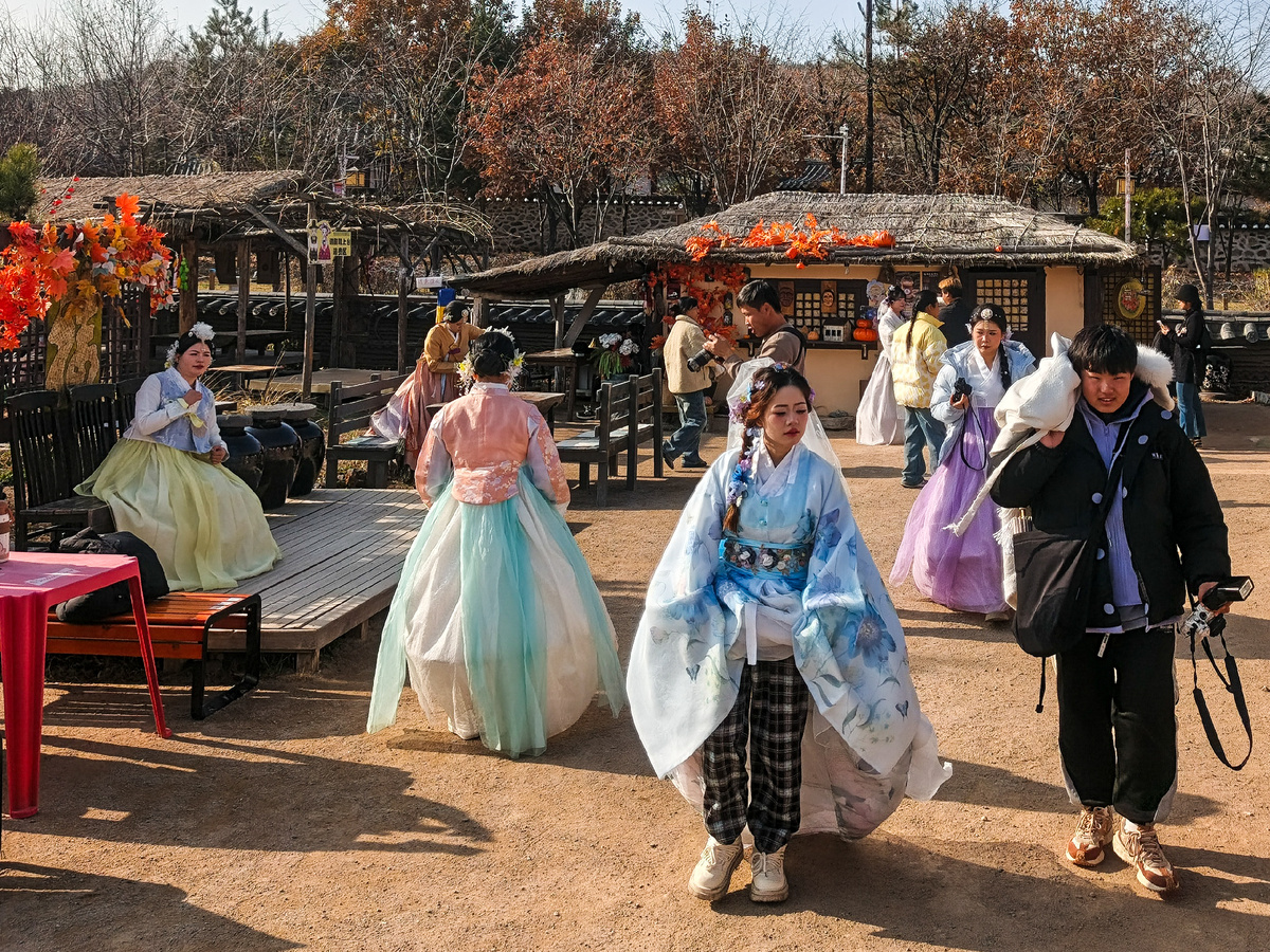 Корейская деревня Гомао в Янцзы — это масштабная фотолокация под открытым небом, где всё организовано для создания идеальных кадров. Она находится в пешей доступности от центра Янцзы, что делает её удобной для посещения. Территорию разделяют на несколько тематических зон. Каждая зона продумана для разных типов съемки. Вдоль главной улицы расположены десятки студий, предлагающих: · Прокат корейских костюмов — от простых повседневных ханбоков до богатых свадебных нарядов · Услуги визажистов, которые создают гармоничный образ от макияжа до прически · Подбор аксессуаров — от вееров до традиционных головных уборов На территории постоянно работают фотографы, но многие посетители делают любительские снимки или приходят со своим фотографом. В Гомао можно не только фотографироваться, но и попробовать традиционную корейскую еду и напитки. Это место пользуется популярностью как у туристов, так и у местных жителей. О моей спонтанной поездке в Китай: