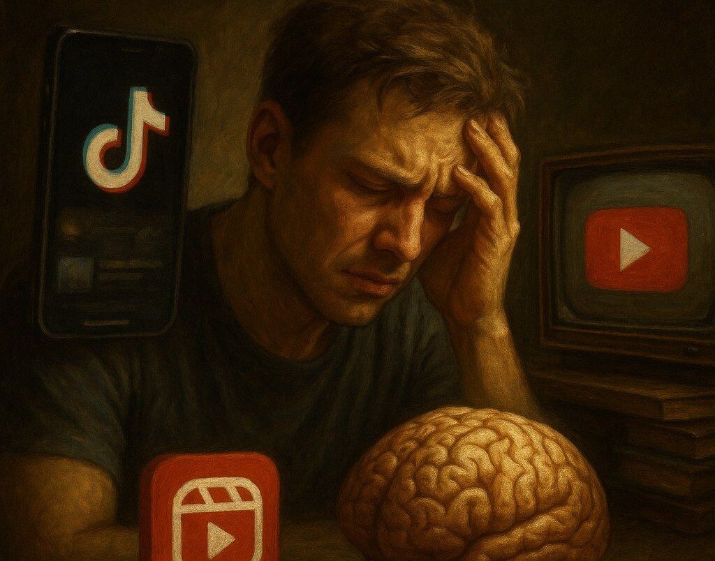 Исследования подтвердили — короткие видео убивают ваш мозг Американская психологическая ассоциация опубликовала исследование, в котором приняли участие 98,299 подопытных. Метаанализ "Feeds, feelings, and focus" впервые комплексно оценил влияние коротких видео из TikTok, Reels и YouTube Shorts на когнитивные функции и психическое здоровье.📊 Результаты оказались тревожными: чрезмерное потребление короткометражного видеоконтента напрямую связано с ухудшением когнитивных функций. Особенно сильно страдают внимание (корреляция r = -0.38) и тормозной контроль (r = -0.41) — способность сопротивляться импульсам и фильтровать отвлекающие факторы.🧠 Постоянная смена высокостимулирующего контента вызывает привыкание — мозг буквально снижает чувствительность к медленным когнитивным задачам вроде чтения, решения проблем или глубокого обучения. Одновременно алгоритмически подобранные видео усиливают импульсивное поведение через систему мгновенного вознаграждения.🔄 Персонализированный контент