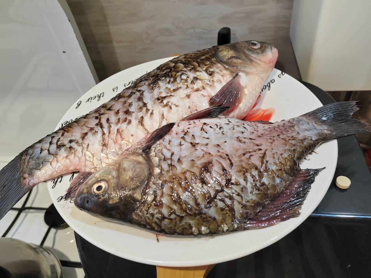 Перепали нам караси, которые были пойманы в Астрахани) Ну, и сразу же свеженьких решили и запечь в духовке под сметанным соусом. Делается это быстро, а получается очень вкусно) Для начала чистим, убираем внутренности и делаем надрезы вот так сверху карасей, чтобы было меньше мелких костей при готовке. Скажу сразу, что мелкие кости конечно были, но их было не так много. Выкладываем карасей на фольгу, посыпаем любимыми специями. Мы взяли соль, чёрный перец, майоран, петрушку, розмарин, тимьян. Можно применить специальные специи для рыбы. Внутрь карасей положили репчатый лук и по кусочку сливочного масла. А сверху карасей хорошо смазали 20% сметанкой. Ну, и всю эту красоту заворачиваем в фольгу, оставляя немного места сверху) Затем карасей отправляем в духовку минут на 40, потом фольгу открываем и ещё минут на 10. Ну и всё, наслаждаемся вкусным карасём под сметанным соусом! Получается очень вкусно, мясо у карася нежное с чуть сладковатым привкусом. Спасибо за просмотр)