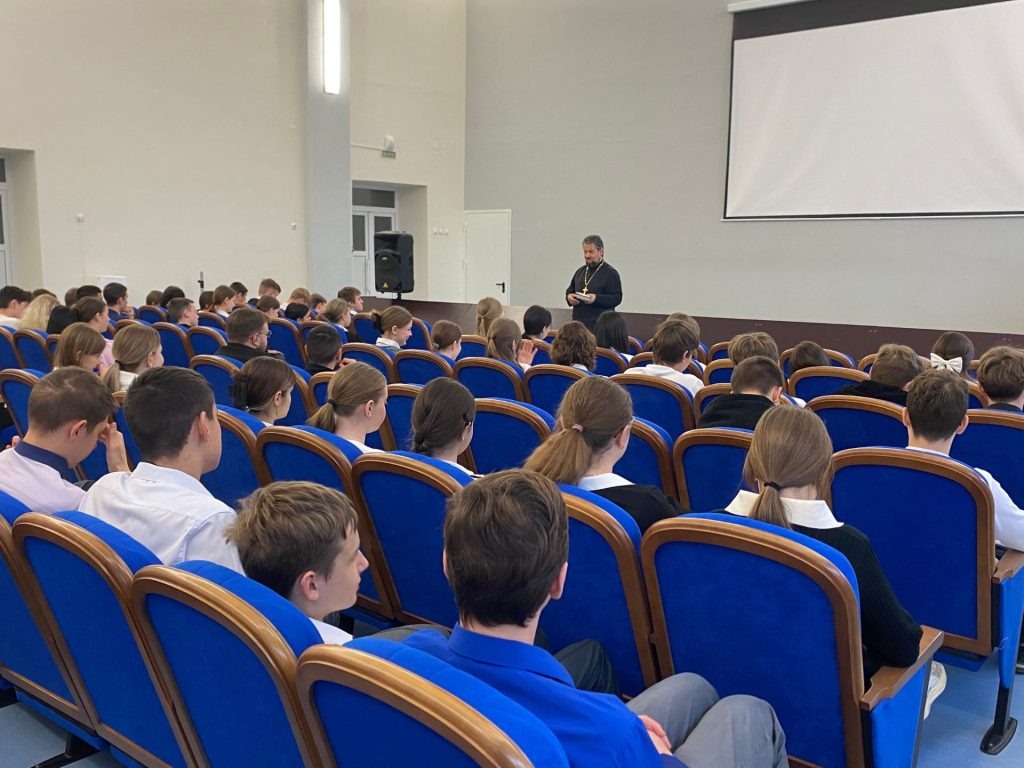 В рамках духовно-нравственного воспитания для учащихся 9-х классов была организована встреча с настоятелем храма Покрова Пресвятой Богородицы села Песчанокопское, протоиереем Виктором Зубовым. Темой для диалога со старшеклассниками стало одно из самых глубоких чувств — любовь. Отец Виктор рассказал о её многогранности с точки зрения православной традиции, объяснив, что это не только эмоция, но и ежедневный труд, основанный на милосердии, терпении, умении прощать и поддерживать тех, кто рядом. Особый акцент в беседе был сделан на практическом проявлении любви в семье и дружбе. Школьники обсудили с гостем, как строить отношения на уважении и взаимной ответственности. Эта встреча помогла подросткам задуматься о духовных ценностях и стала важным вкладом в их нравственное развитие. (По информации МБОУ СОШ №1 им. Г.В. Алисова)