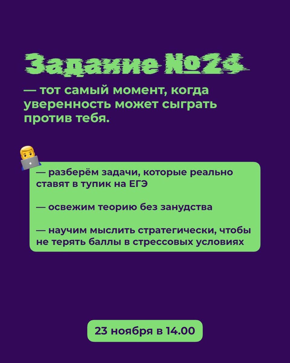 ✔️Уже сегодня в 14:00 встречаемся на вебинаре «Самое сложное задание №24