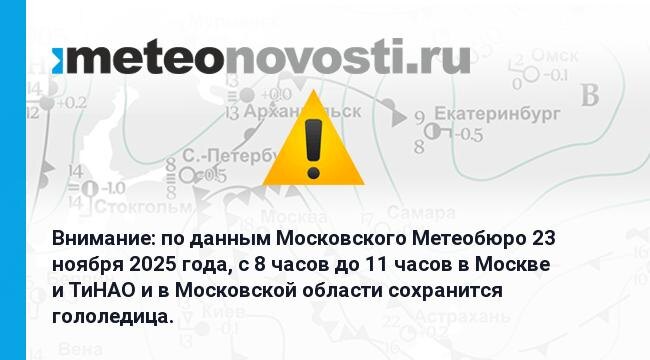 Внимание: по данным Московского Метеобюро 23 ноября 2025 года, с 8 часов до 11 часов в Москве и ТиНАО и в Московской области сохранится