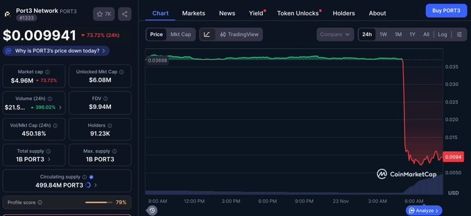 🏴☠️ Взлом контракта Port3 Network на BSC. Похоже, что контракт токена Port3 Network с поддержкой кросс-моста в сети BSC был скомпрометирован, что привело к несанкционированной эмиссии 1 000 000 000 токенов. Созданные токены сразу же начали массово продавать, и цена стремительно обвалилась. Будьте осторожны и проверяйте свои позиции!