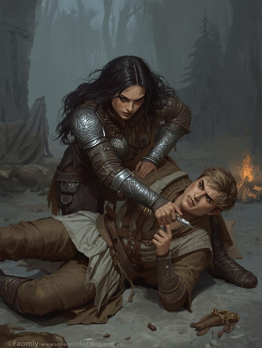 Тот самый момент, когда мир героев трескается, а они сами вступают в борьбу — с врагом, судьбой или собой. У меня получилась сцена столкновения двух очень разных людей:
