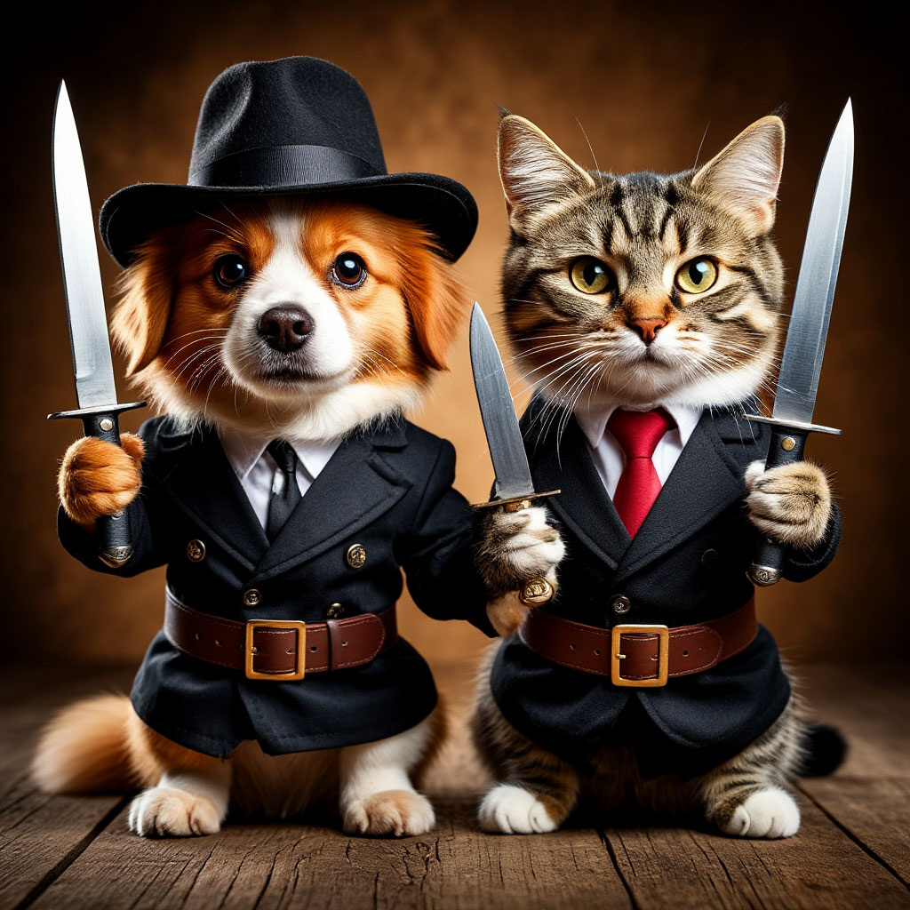 Ну вот хотели юные таланты Копейку зашибить на провианты Трудами, песнями, но как на зло В столице нифига не повезло. Повозка покатила на опушку. В лесу друзья увидели избушку. * Петух: —А там разбойники опять. Клинок: —Тогда бы лучше нам удрать! * Осёл: — Сейчас их лаем напугаю. * Меч: —Ой, мне страшно! Я так не играю. Алёша: —Хватит! Не позорь нас, трус! Клинок: — Я может за тебя боюсь. Скажи, когда дерутся – очень больно? * Им шикнул юноша: —Ч-ч-ч! Всё, довольно. Боитесь – оставайтесь здесь вдвоём. * Меч: —В темноте!!! Нет, с вами мы пойдём. Пёс: —Даже вдр-р-руг с того явились света Они, но бр-р-ратцы, чую там котлета! Кот: —Мяу! На опасности плюю! Петух: —Да я их нафиг заклюю! Артисты нарядились великаном, Завыли и ворвались ураганом. Пацан бандитам грозно крикнул: «Бу!!!» Те в ужасе покинули избу, А победителям достался ужин. Грустил лишь парень. Как пить дать не нужен Принцессе мол обычный трубадур. Клинок ему: —Зачем трубой бить дур? Мы по-другому делаем с Алёшкой, Не слушаются