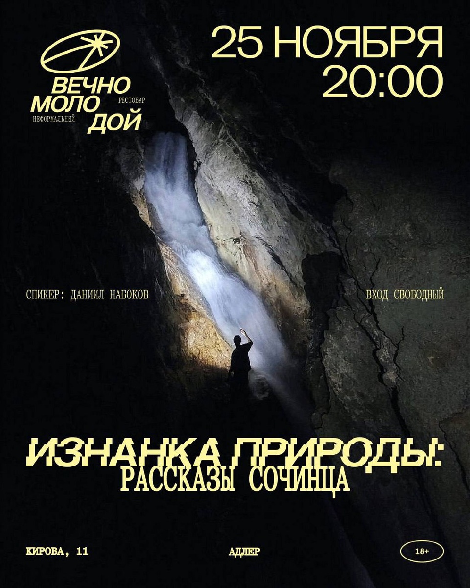 Лекция “Изнанка природы Сочи: рассказы сочинца” в Вечно Молодом 🗓 25 ноября, 20:00 📍 Кирова, 11 🔎 Вход свободный Спикер – Даниил Набоков, автор канала Восторг Сочи 📲 Афиша Сочи в МАХ