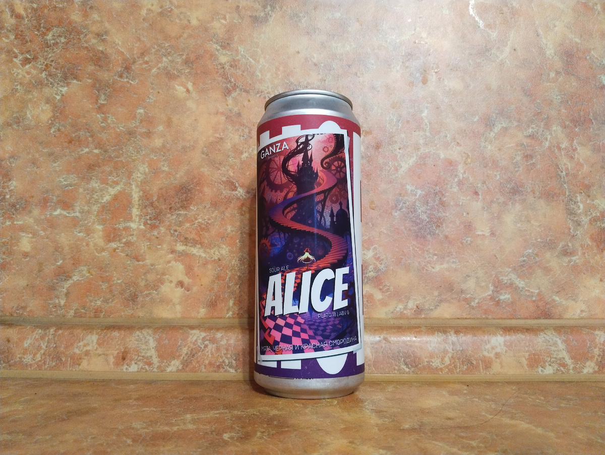 Сауры пил в жизни всего два раза - один для галочки - в ходе большого обзора пива от Самозванцев: Второй раз, когда мне бесплатно подогнали баночку: Это будет третий раз и всему виной коньяк во фляжке и разливной русский имперский стаут от Кёниксов - после работы припил и по - ошибке, покупая кучу мутняков от Ганзы, захватил и кисляк - невнимательный был... Дома, проверив покупки, малость успокоился - возвращать не буду, ибо в кисляке чёрная и красная смородина, которые я очень люблю в виде ягод. Чем чёрт не шутит - вдруг понравится? В июле 1865 года впервые была опубликована сказка, написанная английским математиком и поэтом Льюисом Кэрроллом. В ней рассказывается о девочке по имени Алиса, которая попадает сквозь кроличью нору в воображаемый мир. Ровно 160 лет спустя мы приглашаем вас в сказочный мир саур эля с невероятным вкусом черной и красной смородины, ароматом свежей мяты и волшебным ягодным послевкусием. Следуйте за белым кроликом. Алкашка/плотность - 6%/18%. IBU - ???. Ст