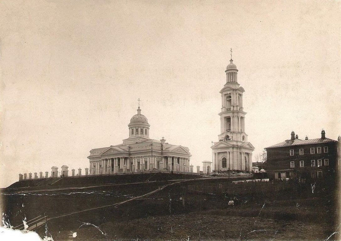 Напротив Троицкой церкви находятся два старинных двухэтажных здания из красного кирпича