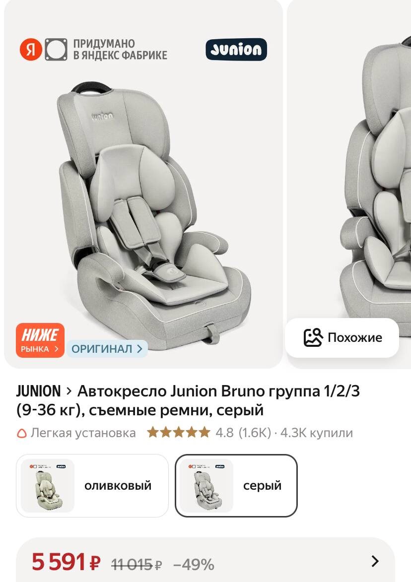Автокресло Junion Bruno группа 1/2/3 (9-36 кг), съемные ремни, серый