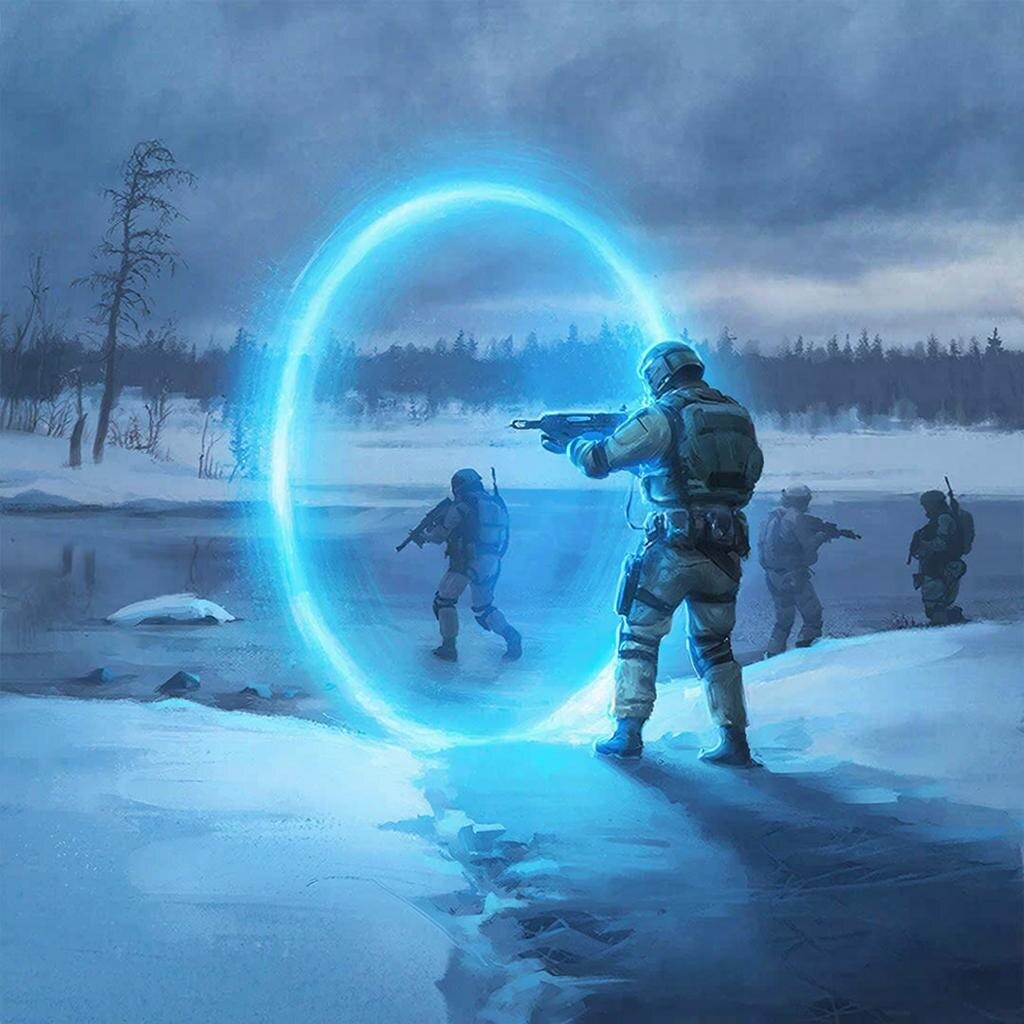 Группа решила рискнуть. Несколько добровольцев надели защитные костюмы и вступили в сияющую зону портала. Алексей шёл первым, следом за ним двинулись остальные бойцы. Пространство начало сжиматься, окружающая среда сменялась резкими вспышками света и тени.