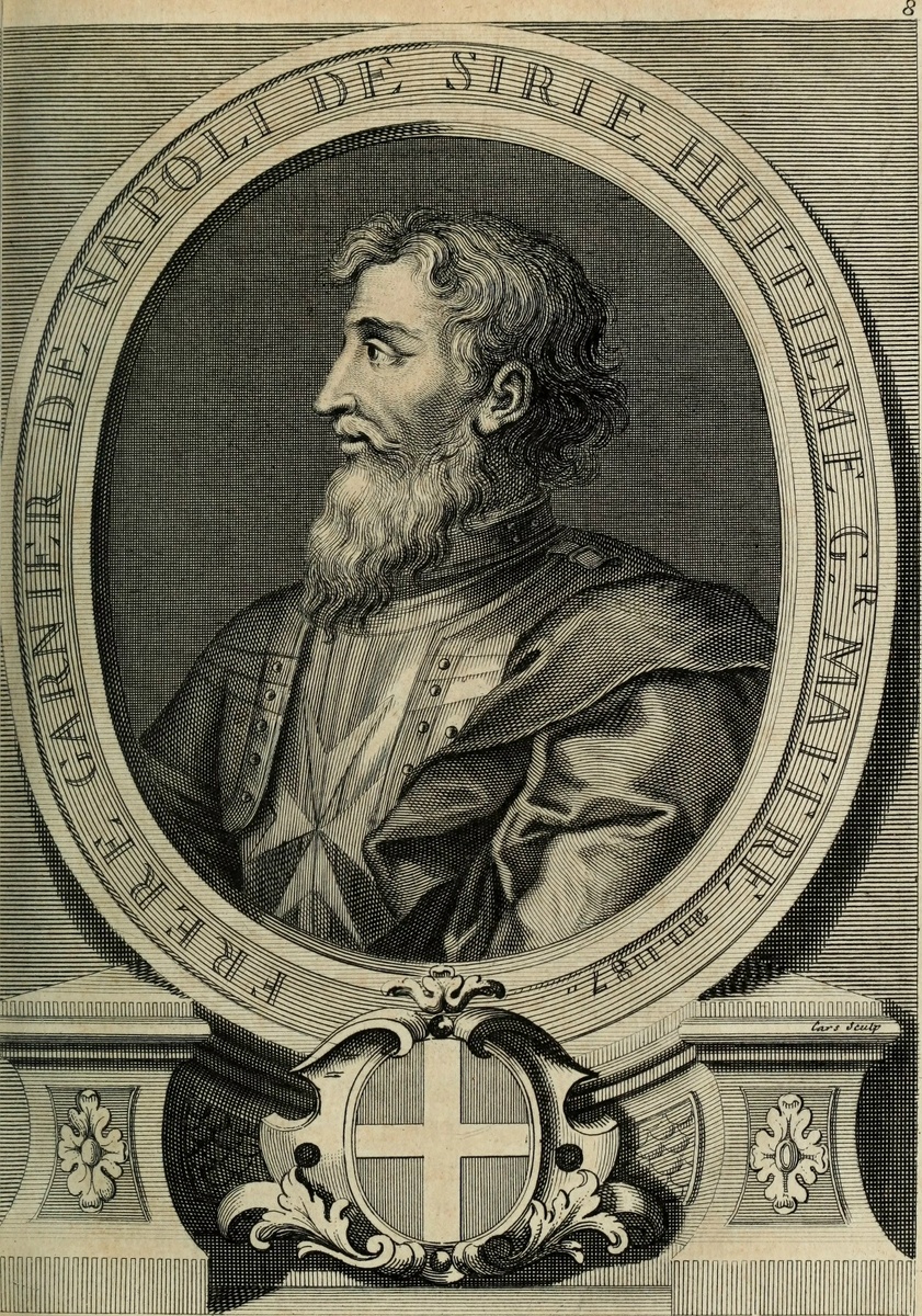 Гарнье де Наплуз — 9-й великий магистр ордена госпитальеров с 1190 до 1192 года. Он сражался в битве при Арсуфе за короля Ричарда I Львиное Сердце во время третьего крестового похода. Битва при Арсуфе Ричард заранее приказал не вступать в непосредственный бой с противником во время движения на захват Яффы. Размещённые в задней части военной колонны, госпитальеры Гарнье находились под сильным натиском мусульман. Враг постоянно засыпал их стрелами в попытке сорвать атаки крестоносцев и завлечь их в полную битву. По манускрипту XIII века «Ричард Львиное Сердце завоёвывает Кипр», и в переломный момент битвы, Гарнье поскакал прямо к королю Ричарду, чтобы убедить его начать атаку: «Мой король, враг сильно теснит нас и хочет покрыть наши имена позором, будто бы мы не отвечали им на их удары; мы теряем наших лошадей одну за другой. Так почему же мы должны терпеть это дальше?» Он также попросил Ричарда ослабить натиск врага с помощью атаки кавалерии. Ричард отказал ему: «Великий магистр, это ты