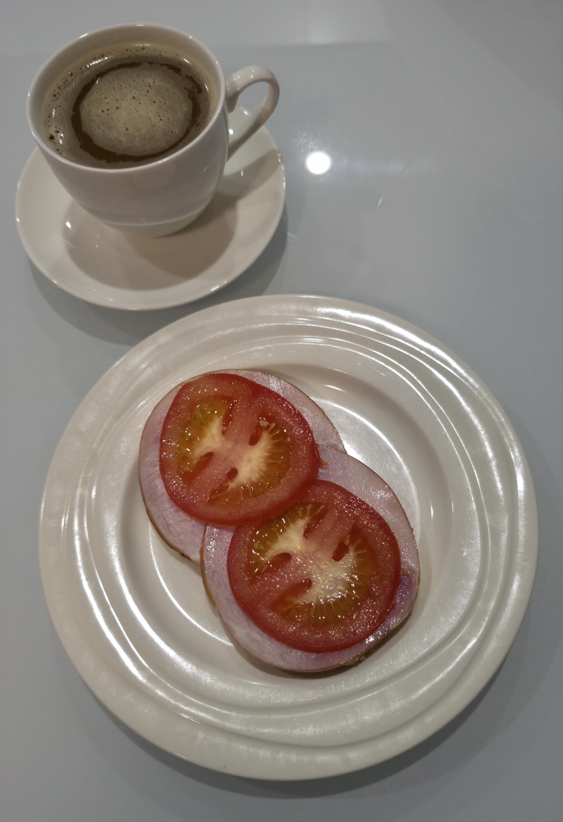 Вчера прикупила помидорку. Это, конечно, не мамина с огорода, которая пахнет прямо божественно. А пластмассовая из магазина. Но всё равно она яркая, со вкусом помидорины. Возьму хлеб, положу на него колбасу и накрою красным кружком помидора. Добавляем к натюрморту чашку кофе на овсяном молоке и вперед, в новый день! Доброе утро 🌄 И пусть у вас всё получится! Мой телеграм-канал с завтраками