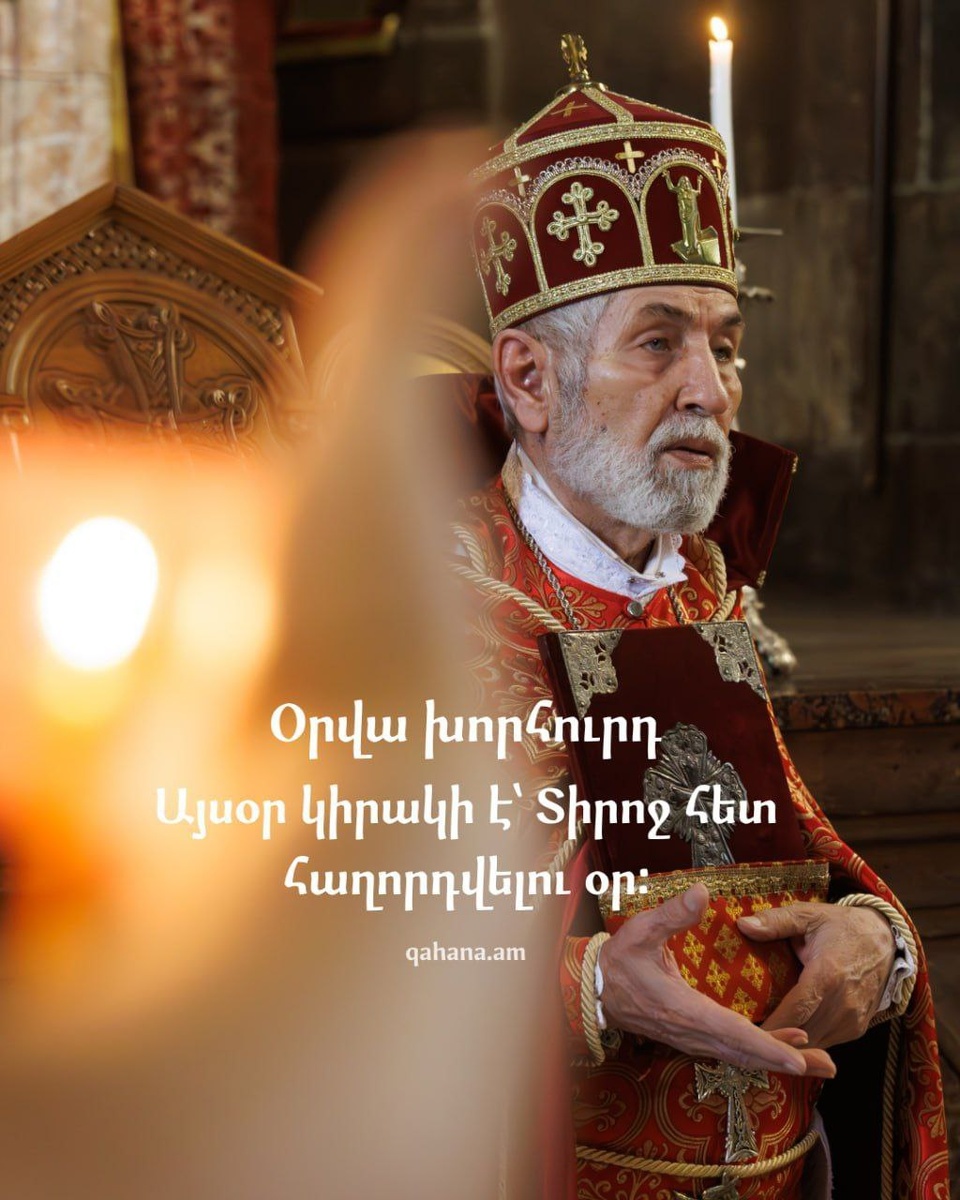 Օրվա խորհուրդ Նոյեմբերի 23 Սուրբ Հաղորդություն ստանալու համար պետք է կարողանանք ջանք դնել: Պետք է պատրաստվենք Հաղորդությունից Հաղորդություն՝ մեր խղճի առաջ ազնիվ լինելով: Այսօր կիրակի է՝ Տիրոջ հետ հաղորդվելու օր։