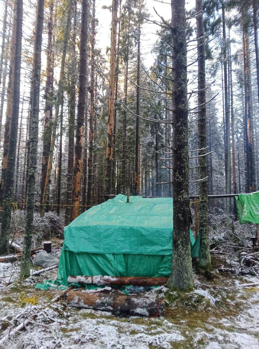 Серия о том , как нужно любить походы 🏕️! Вы думаете палаточные - это только летом у озера ? А вот и нет ! Тематические и промозглые - да ! 👍 Лес Короеда - 9 выход Пришел днём, ушел вечером). Затопил пробно печь, поколол дров, доложил диски на начало тропы, подскользнулся. За последние два дня лес знатно увлажнился - вода, снег, лёд, слизь бормоглота. Повесил последний ориентир этого сезона. Расстояния маленькие, но с препятствиями. #наболоте #палатки #снег #зимнийпоход #поход