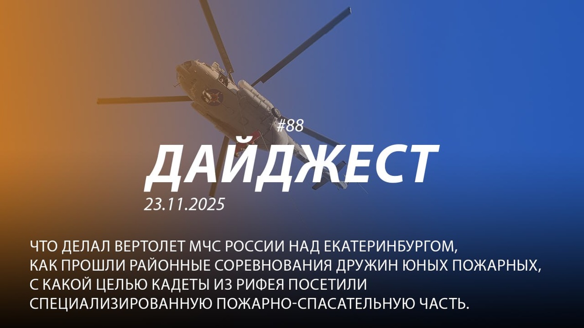 👋Добрый день! 88-й выпуск "Дайджеста" о жизни свердловских пожарных и спасателей ждёт вашего просмотра! Сегодня в выпуске: 🔺С какой целью кадеты из Рифея посетили специализированную пожарно-спасательную часть 🔺Что делал вертолет МЧС России над Екатеринбургом 🔺Как прошли районные соревнования Дружин юных пожарных ✅Переходи на безопасную сторону – подпишись на наши соцсети. Мы начинаем! 🌐 Смотреть в ВК 🌐@mchs66 Подписывайся на МЧС России в MAX | ВК #МЧС #МЧСРоссии #Свердловскаяобласть